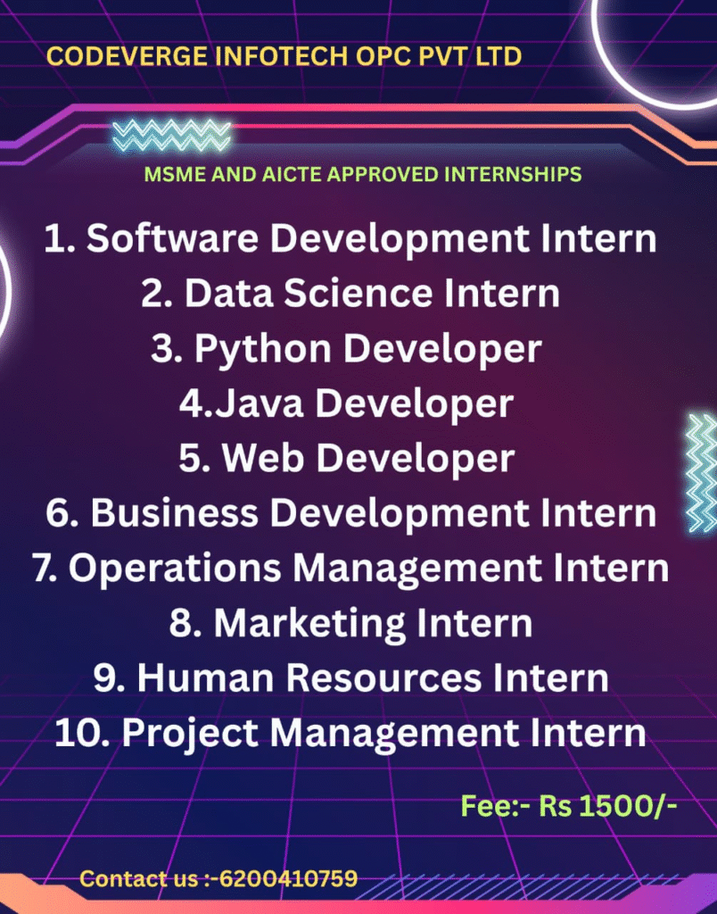 Gain hands-on experience in full-stack software development, learning to design, build, and deploy real-world applications. This internship enhances your understanding of coding logic, debugging, and teamwork while using the latest technologies to develop innovative, user-friendly software solutions aligned with industry practices.